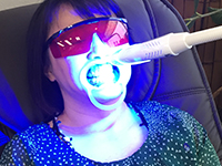 SHABBY CHIC では、世界最先端の国アメリカのドクターが認定した、最も効果が高く痛みを最小限に改良されたジェルを使用している為、安全かつ安心してご利用できます。美歯ホワイトニングエステは、お客様ご自身でジェルを歯に塗布していただき、その上から強力青色LEDを当てます。ノーベル賞を受賞した強力青色LEDとジェルの成分によって、歯の表面の着色料を落とし歯を白くします。また、歯や歯茎を傷めずに短時間で健康な白い歯を目指します。